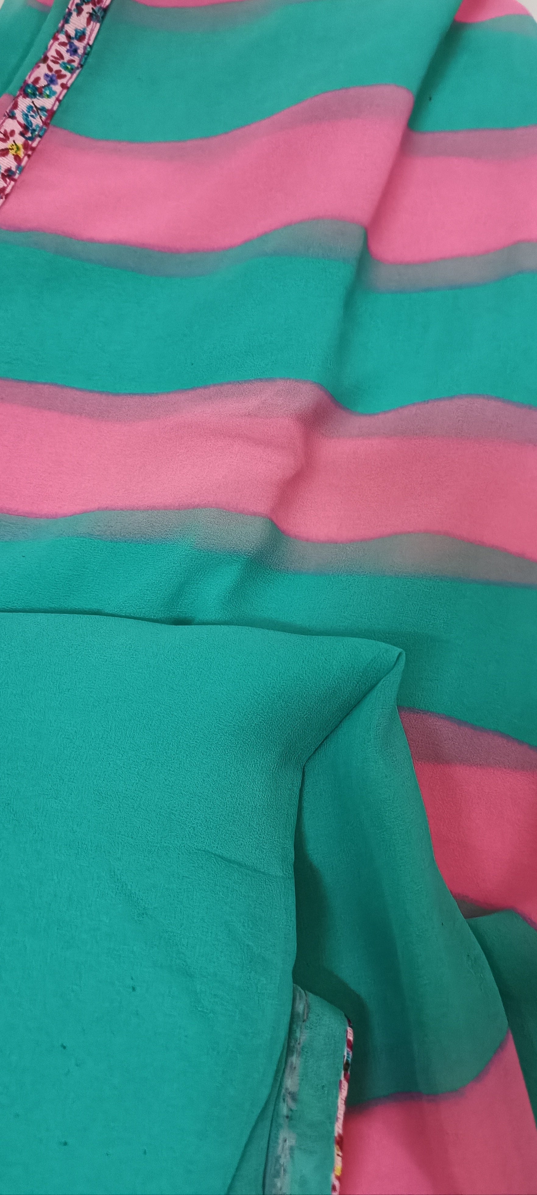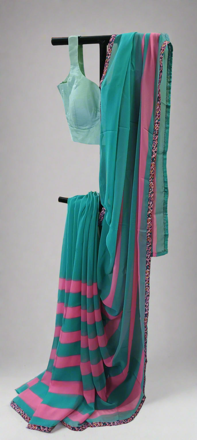 Bubble Mint & Blossom Stripe Chiffon Saree