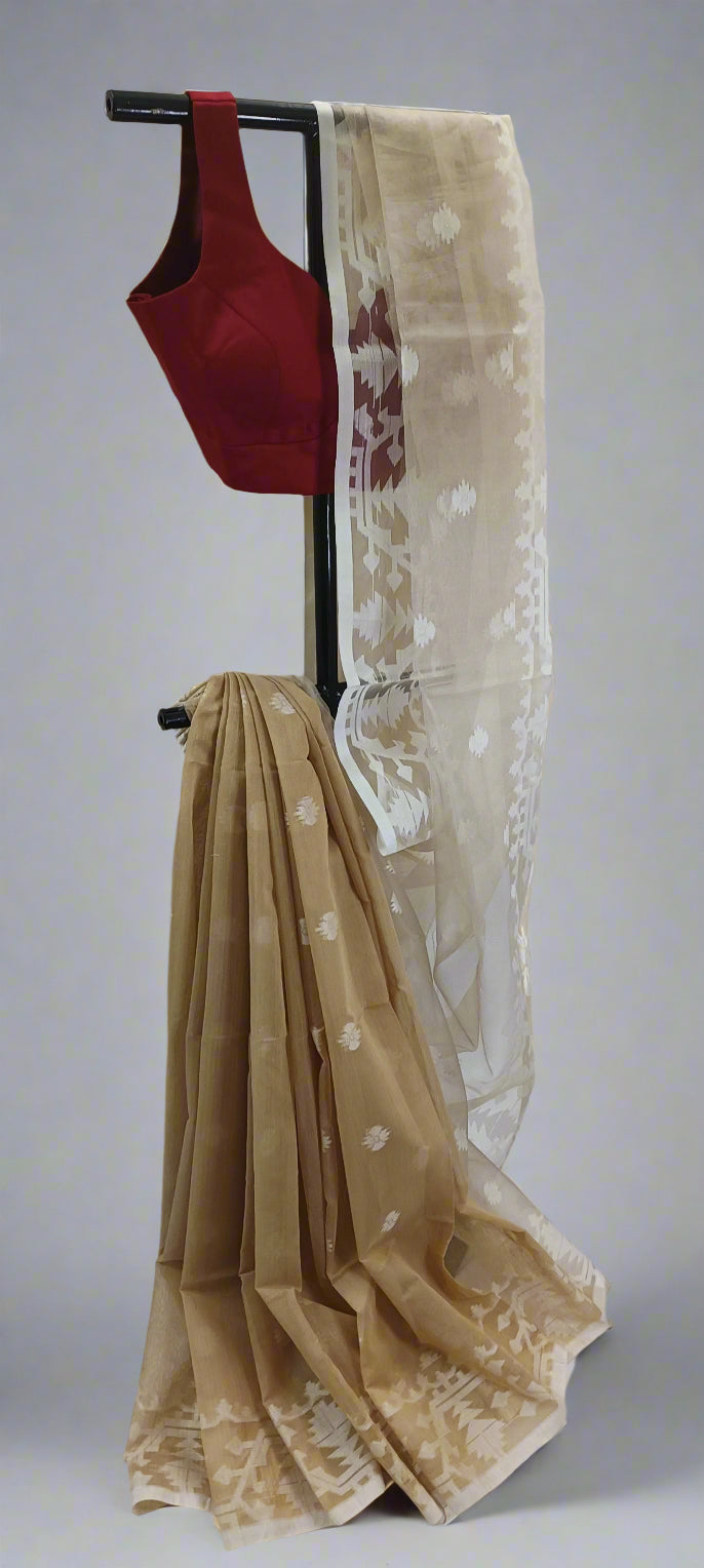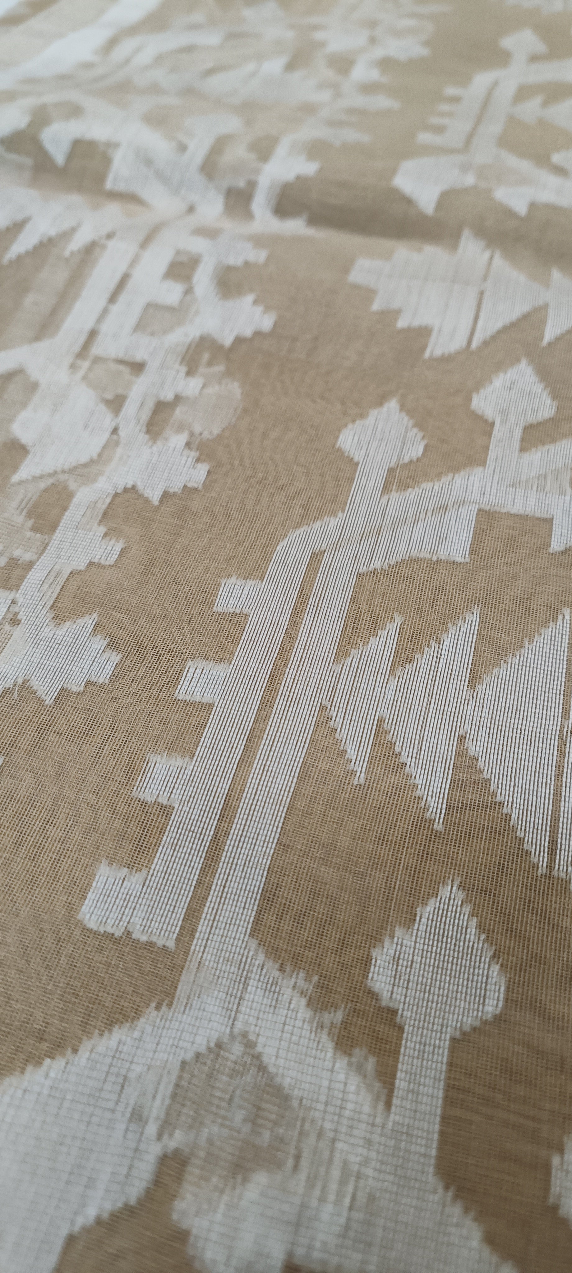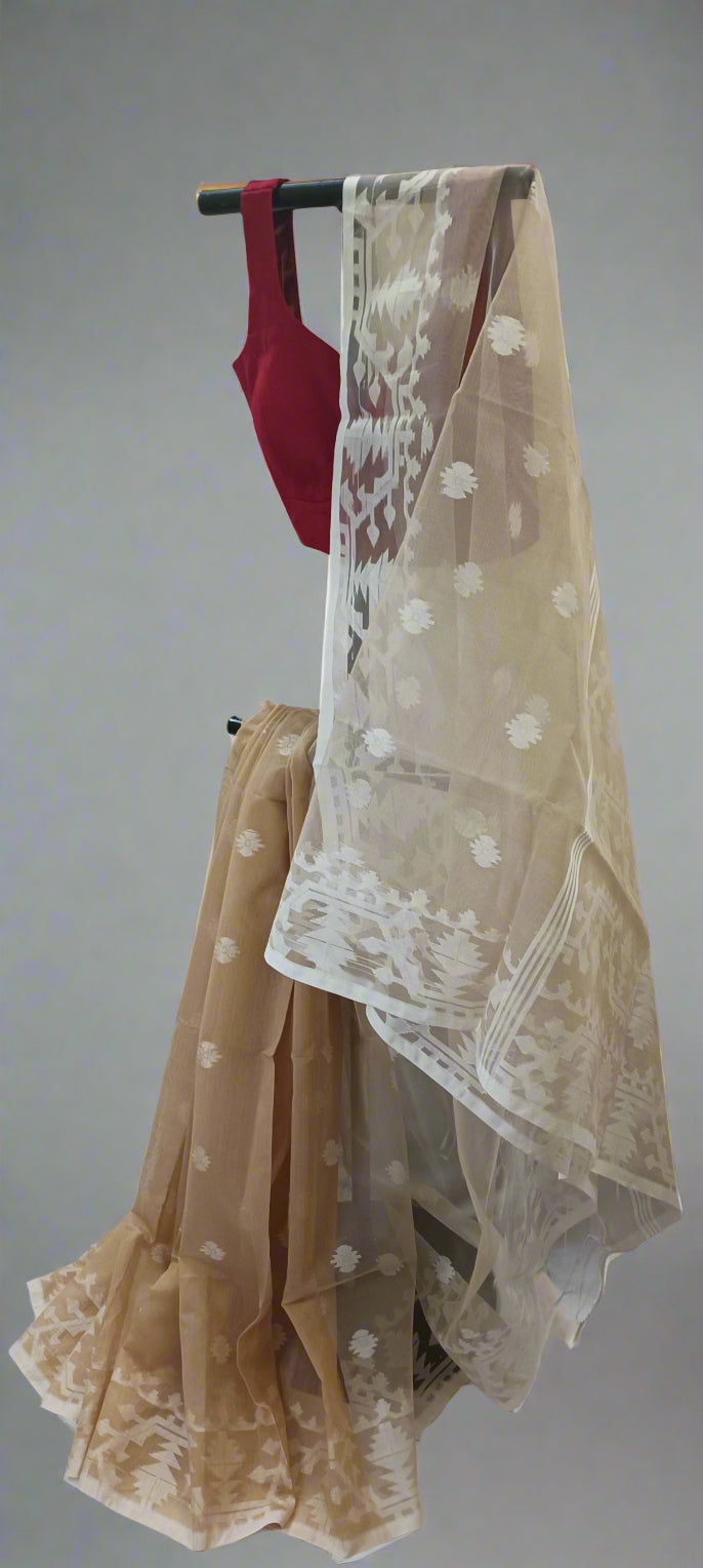 Embrace elegant ease with the HASI – Chhaon Beige Muslin Organza Saree, a serene blend of softness and heritage. Designed especially for the HASI Selection—our tribute to mature grace and timeless simplicity—this saree is made for moments of stillness and strength
