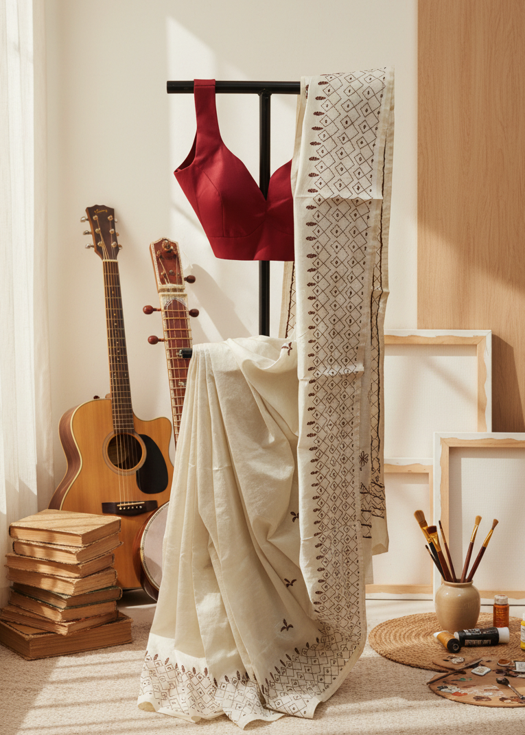 You’ll find styling inspiration in our campaigns and community — but here, the saree speaks first