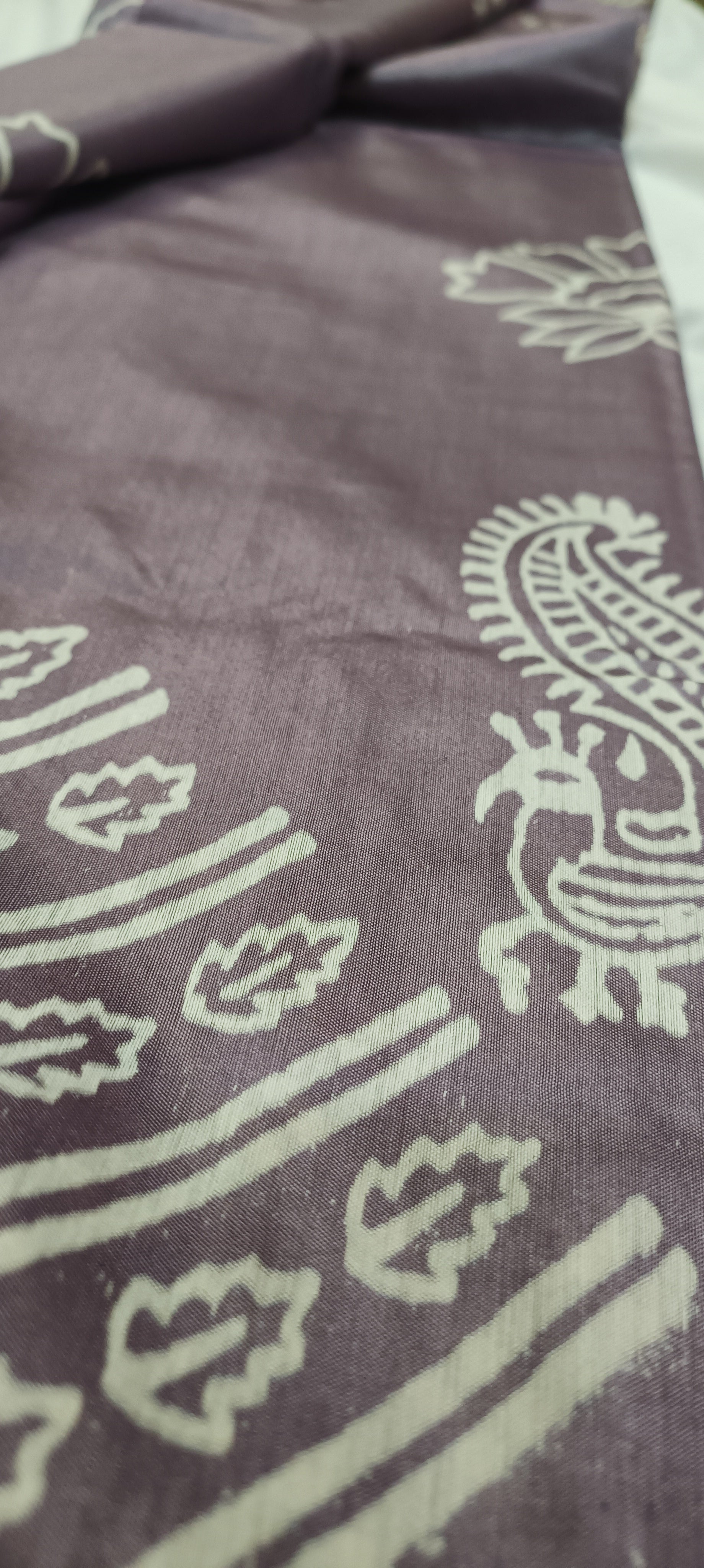 Lilac Kalpataru Bishnupuri Block Print Saree