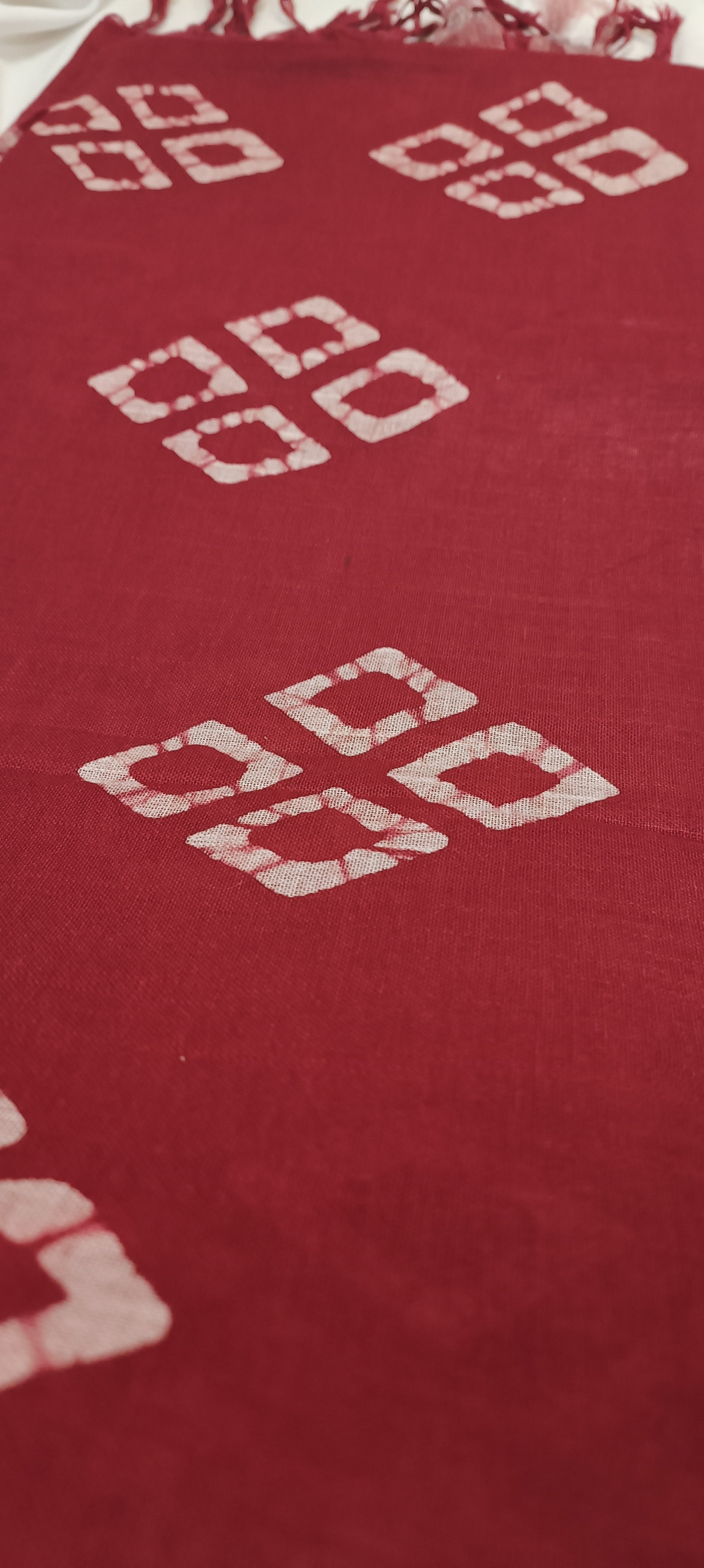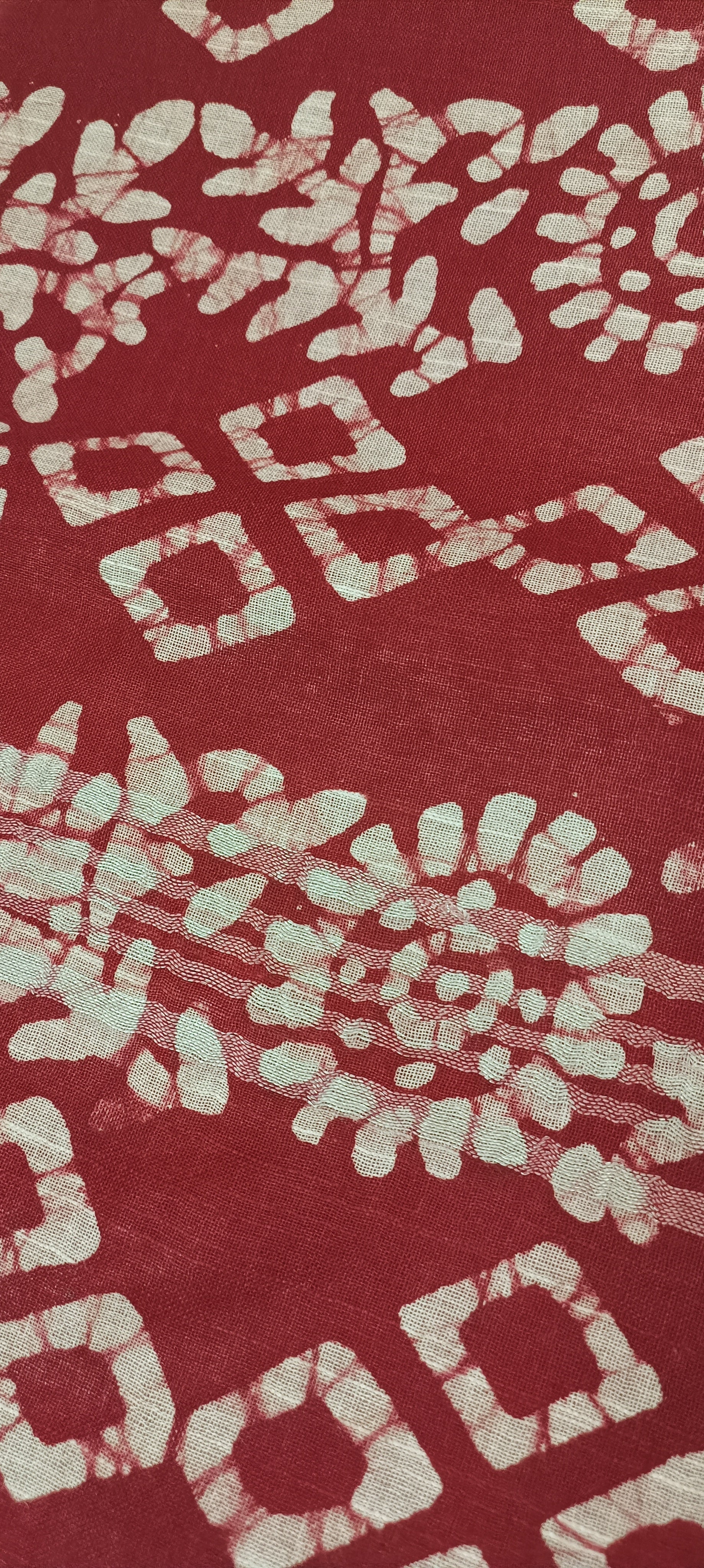 Unfurl the quiet drama of tradition with HIYA – Rakta Gulaal, a Batik print cotton saree that speaks in whispers of craft and care. The rust-red base, softened by natural resist-dyeing techniques, carries delicate geometric and floral batik motifs in muted ivory—each stroke a story, each block a rhythm.