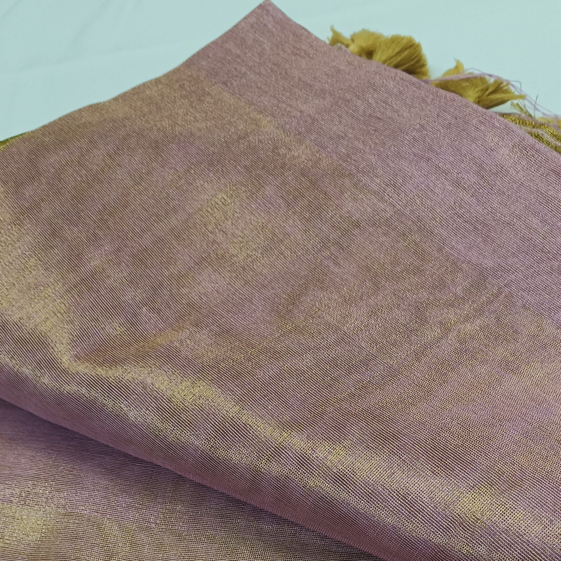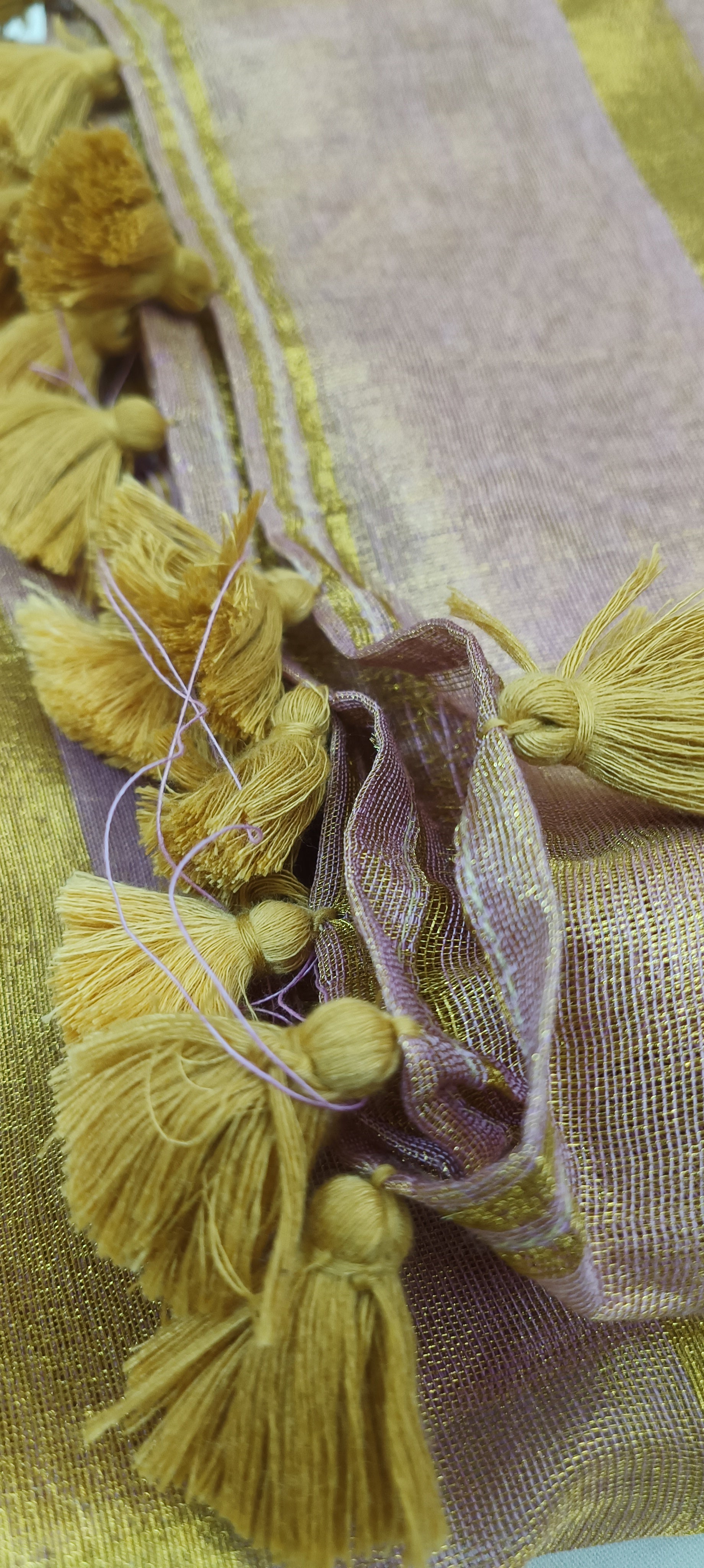 MALA – Gulchhadi Gold is a handcrafted tissue linen saree that blends muted sophistication with festive shimmer. Crafted for women who adore quiet luxury, this saree makes a statement through softness and shine