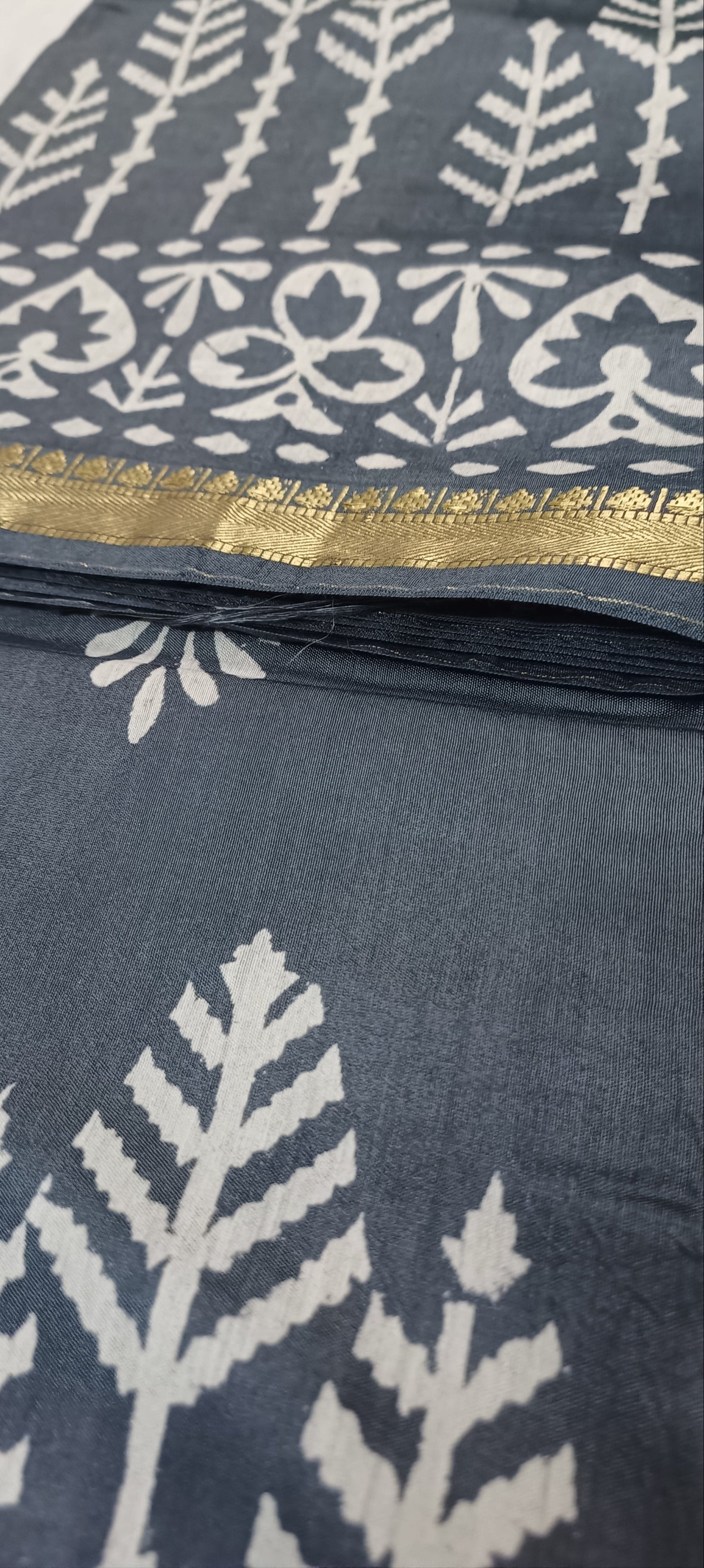 Color - Slate Blue with White Motifs and Golden Zari