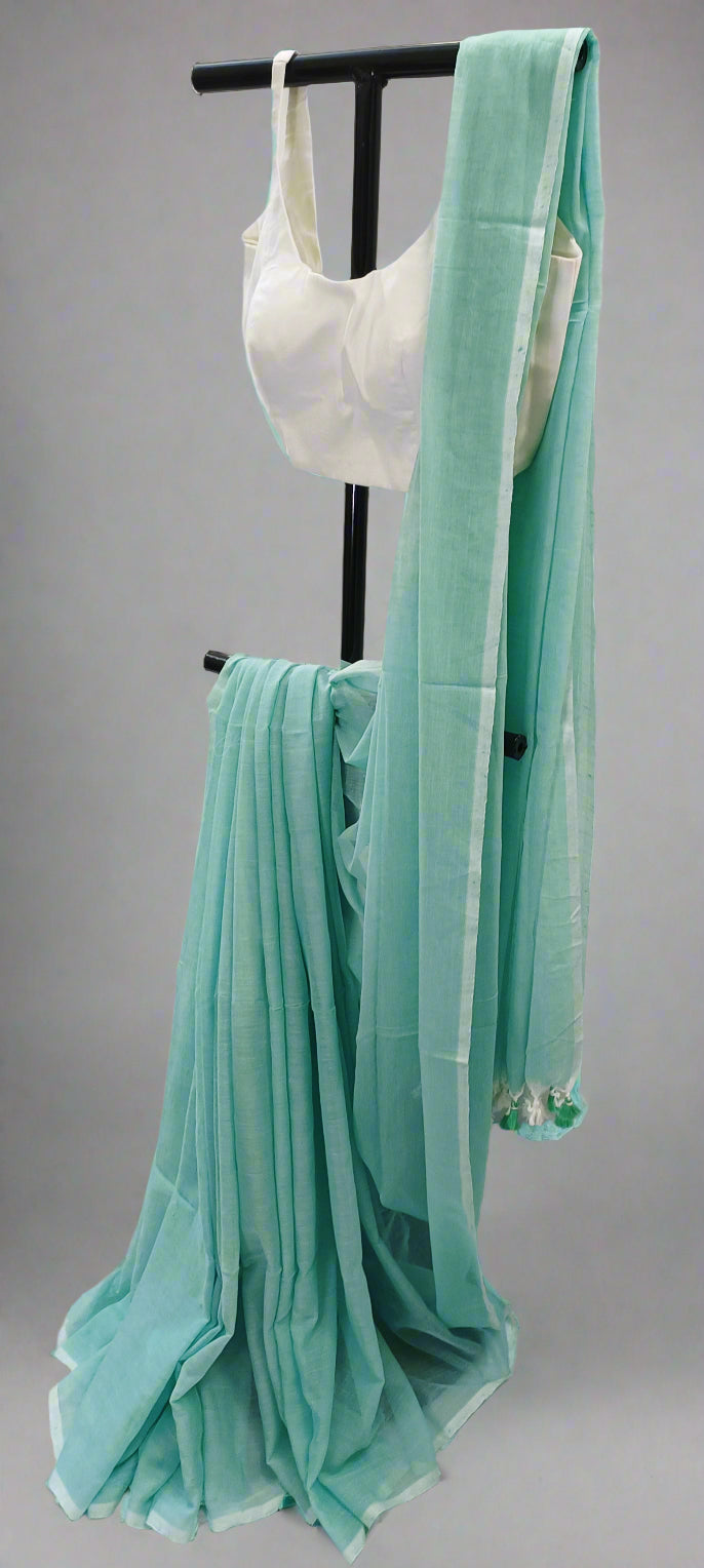 Handwoven from the lightest mul cotton, Aakaashpat is your daily touch of grace. With a gentle fern green body and delicate drape, this saree blends simplicity and confidence — perfect for mindful mornings, artful evenings, and everything in between.
