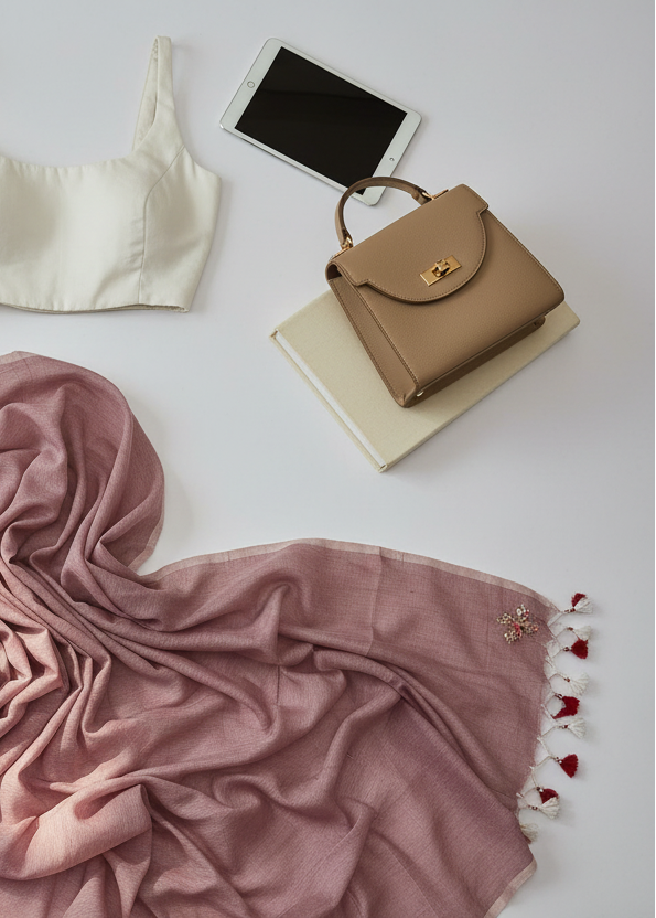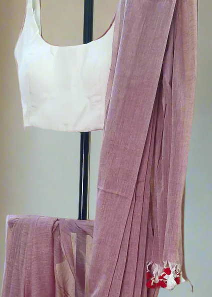 RIMI – Dusky Dahlia is a muted mauve-pink handloom mul cotton saree thandwoven by rural artisans in Eastern India.