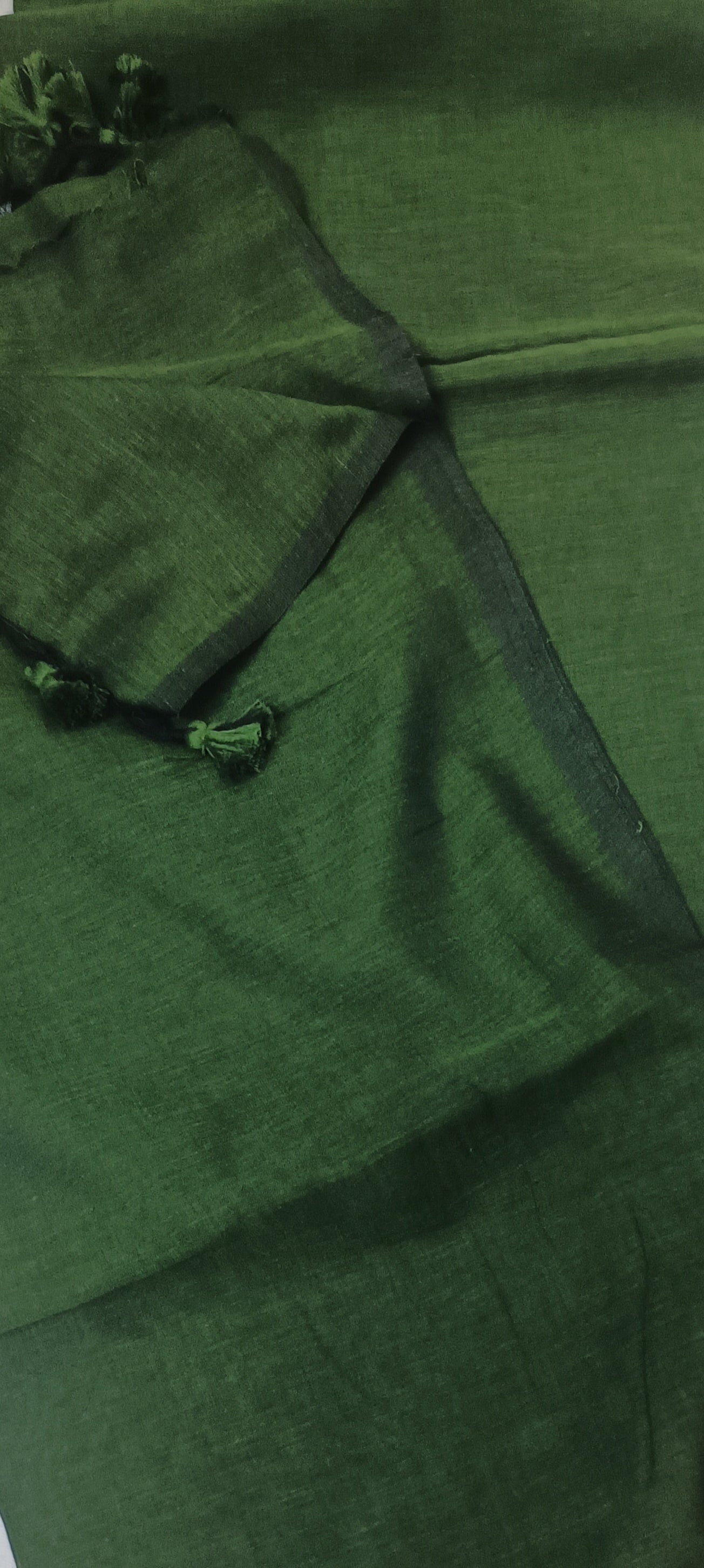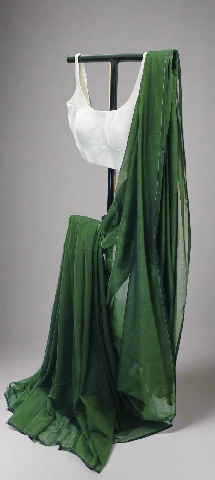 Immerse yourself in the grounding elegance of Haritvastra, a deep green mul cotton saree brought to life with silver zari accents. Soft to touch and fluid in fall, this saree is your everyday calm, dressed in subtle luxury.