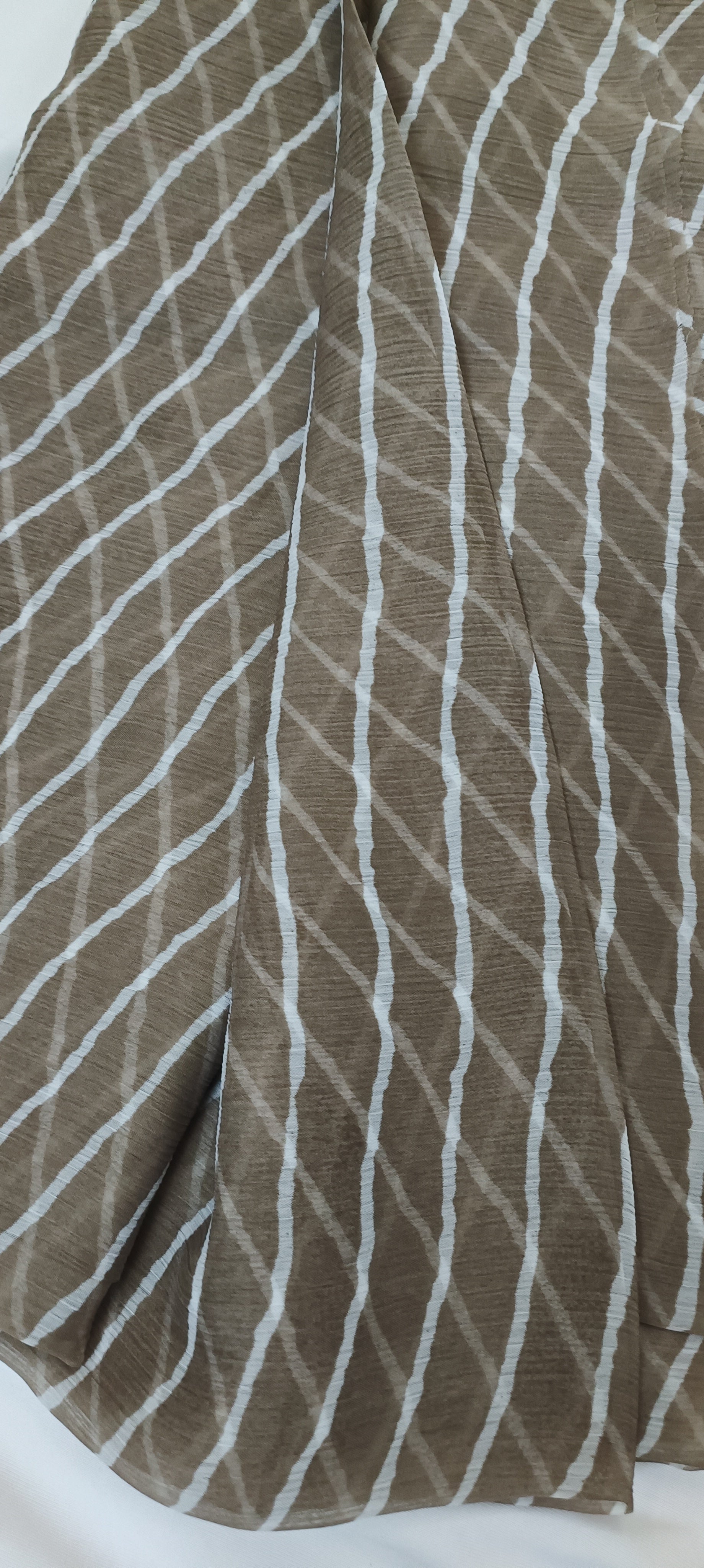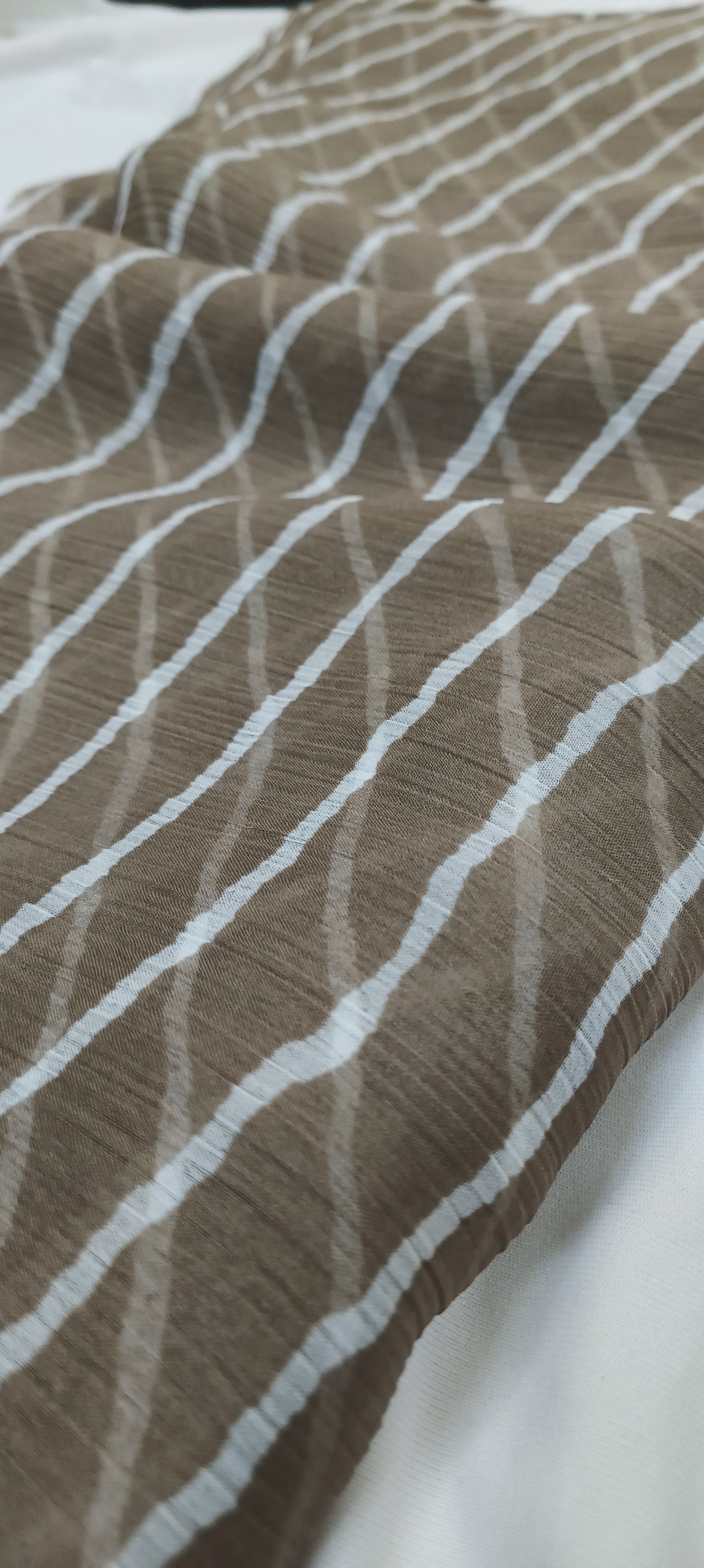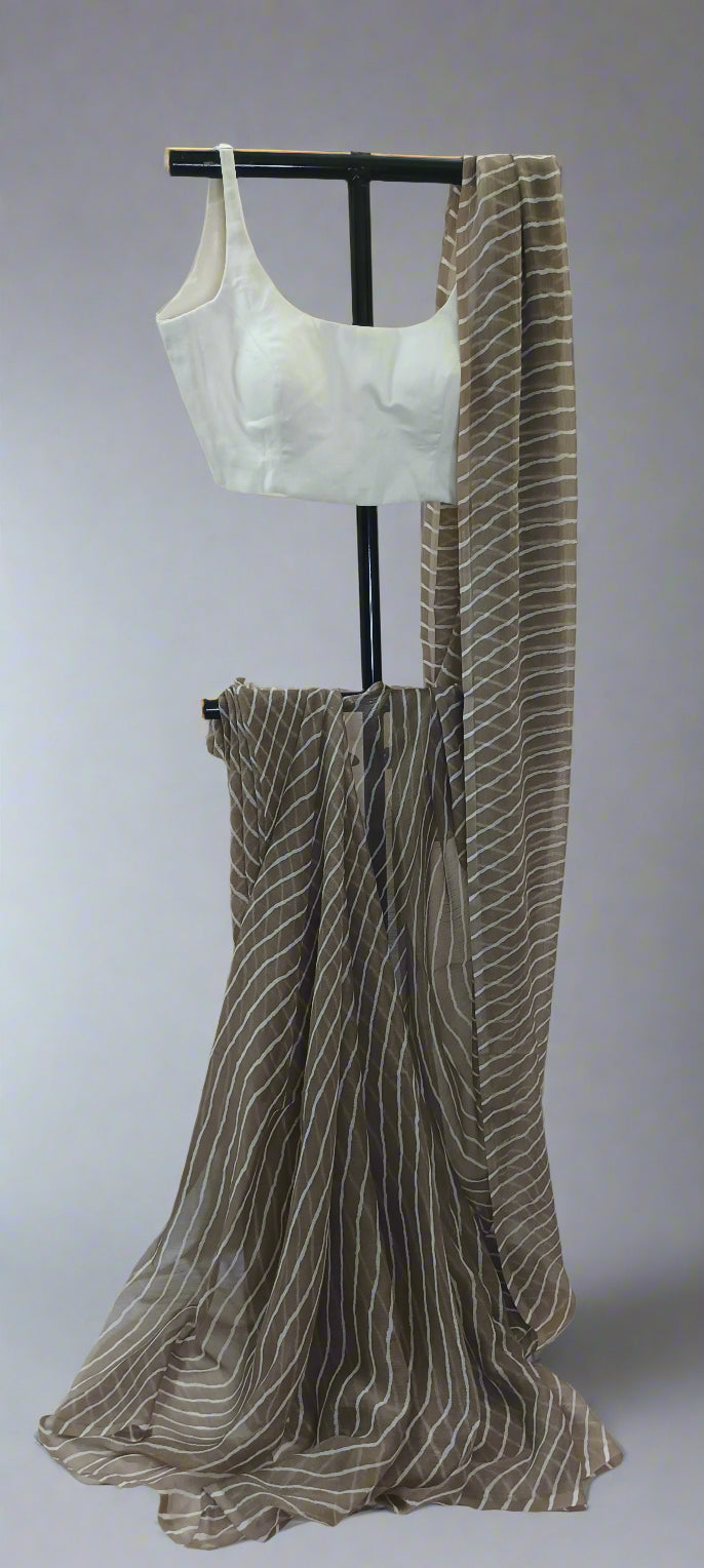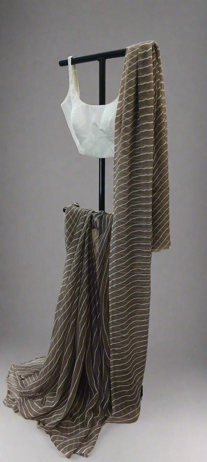 Float through your day in RIMI – Khus Oak, a lightweight chiffon saree in a mellow earthy brown with hand-done white abstract streaks. Designed for the woman who finds strength in simplicity and allure in ease, this saree is perfect for both quiet festivities and mindful everyday moments