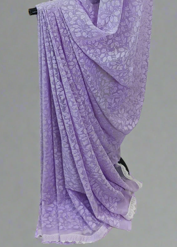 Lavender Whisper Chikankari Work Saree